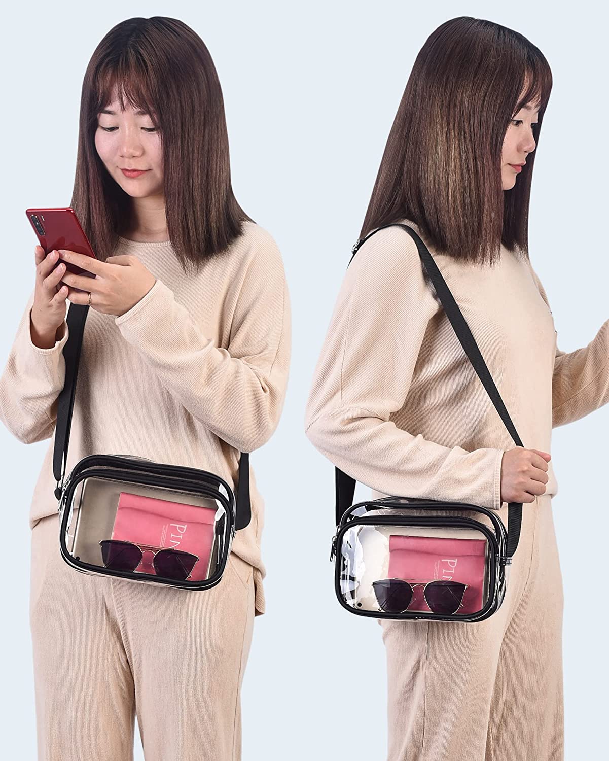 【Sturdy Material】Clear crossbody bag is made of odorless, thickened, transparent PVC with a thickness of 0.4 mm for durability, resistance to cold and tears.